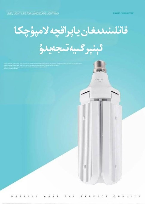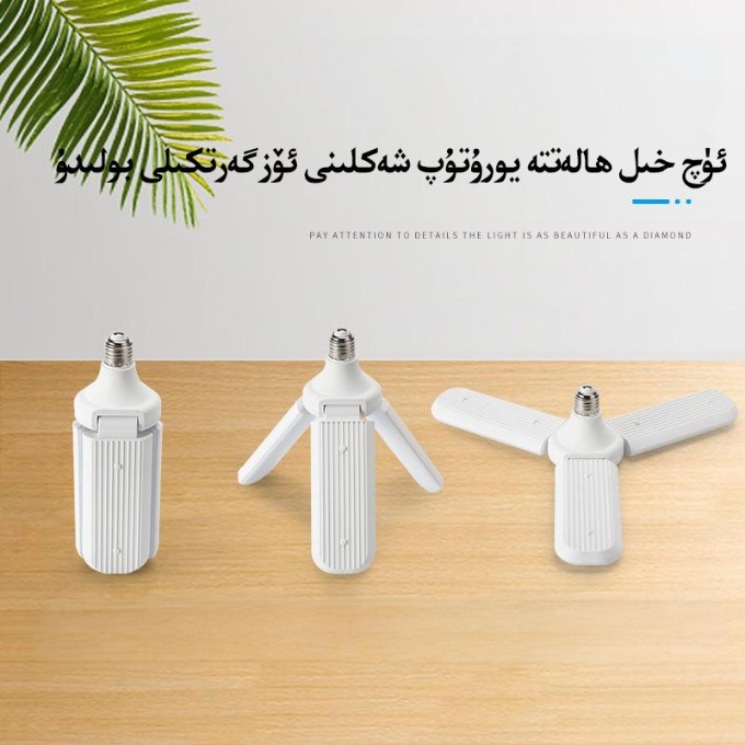 قاتلىنىدىغان ياپراقچە لامپۇچكا ، ئېنېرگىيە تېجەيدۇ، ئۈچ خىل ھالەتتە يورۇتۇپ شەكلىنى ئۆزگەرتكىلى بولىدۇ، ئېنىرگىيە تېجەيدۇ، ئۇزۇن ۋاقىت ئىشلەتكىلى بولىدۇ،ئىسسىقلىقنى ياخشى تارقىتىدۇ، كۆزنى چاقناتمايدۇ